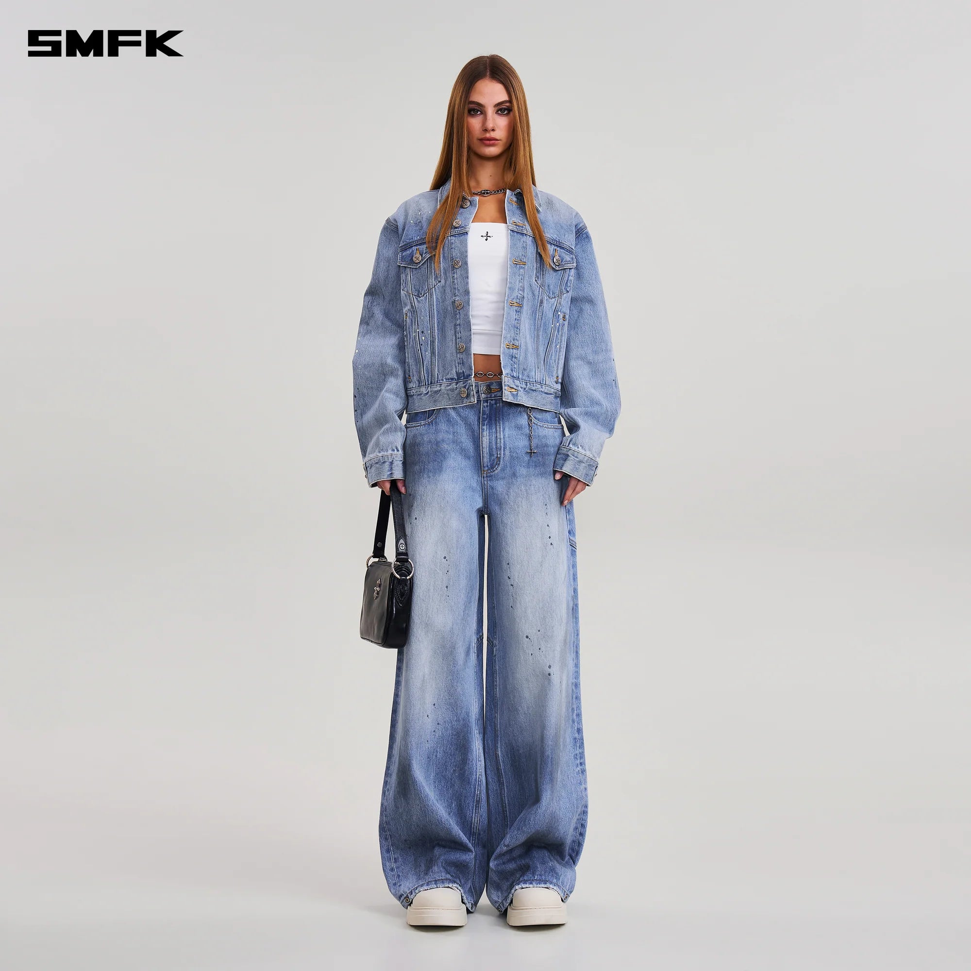 COMPASS MODE WASTELAND LOOSE DENIM JACKET SKY BLUE