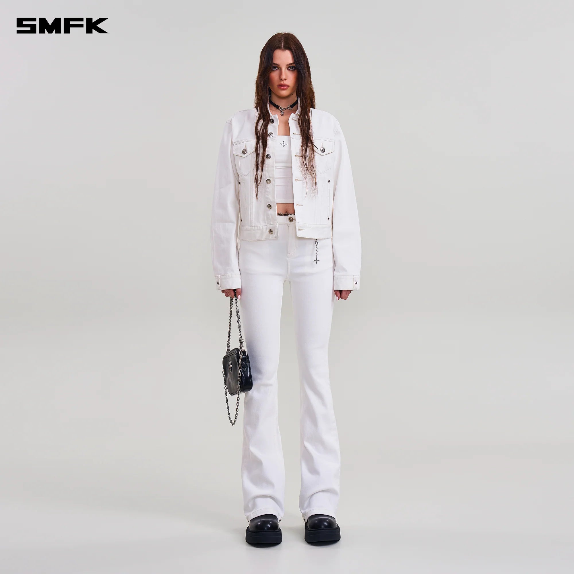 COMPASS PERMANENT SLIM DENIM JACKET SNOW MOUNTAIN WHITE