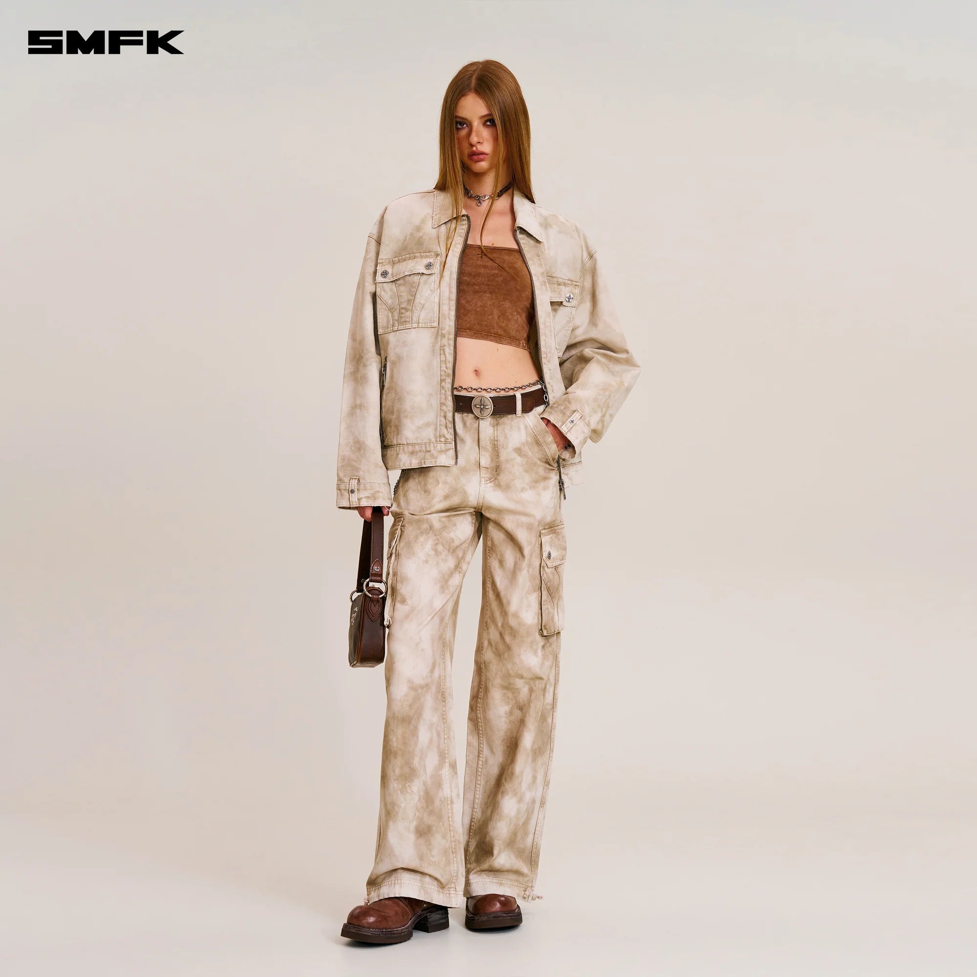 VINTAGE-STORM LOOSE SPORTS CARGO PANTS/FADE DYE HURRICANE CAMOUFLAGE
