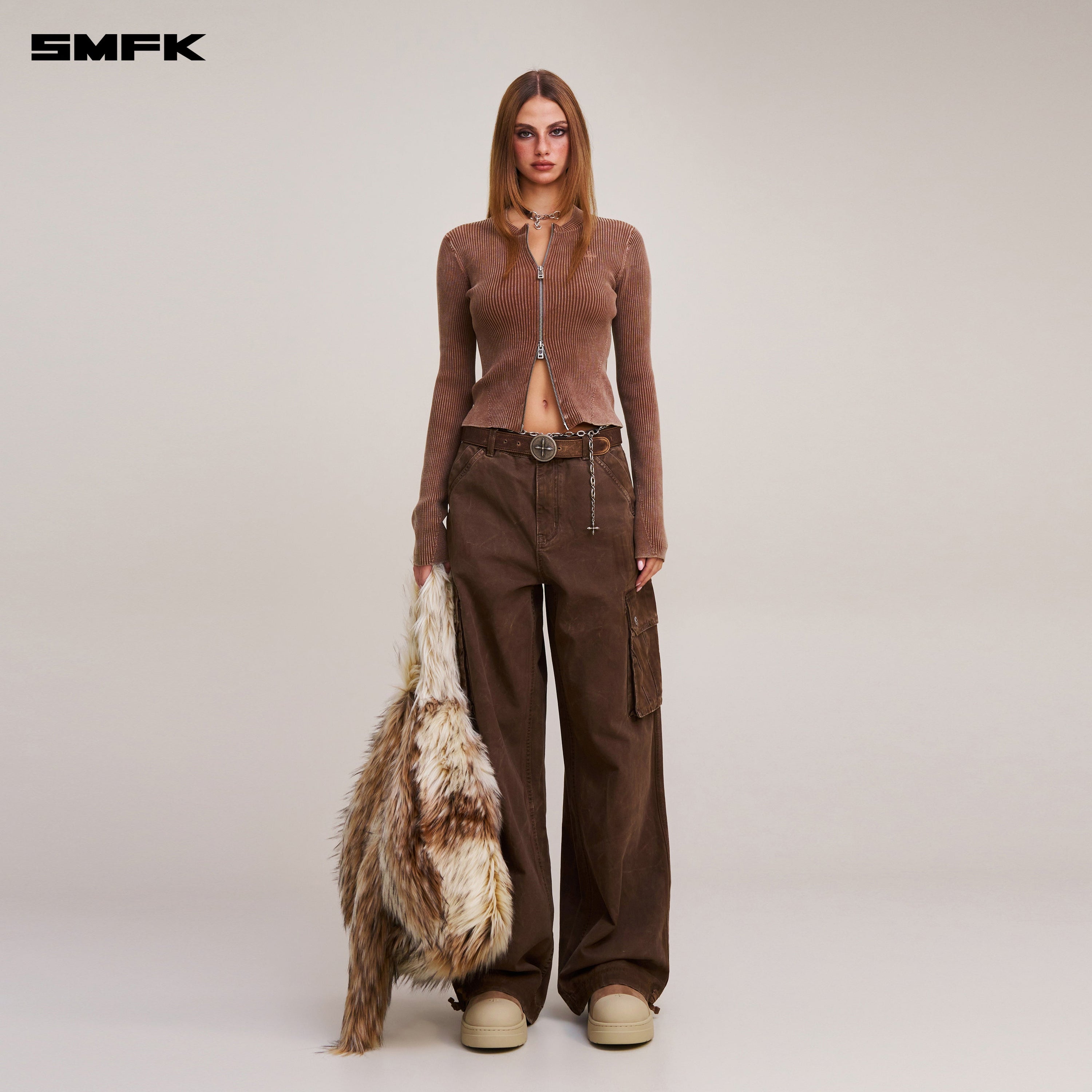 VINTAGE-SAVAGE ZIP KNIT CARDIGAN/STONE WASH VANISH BROWN