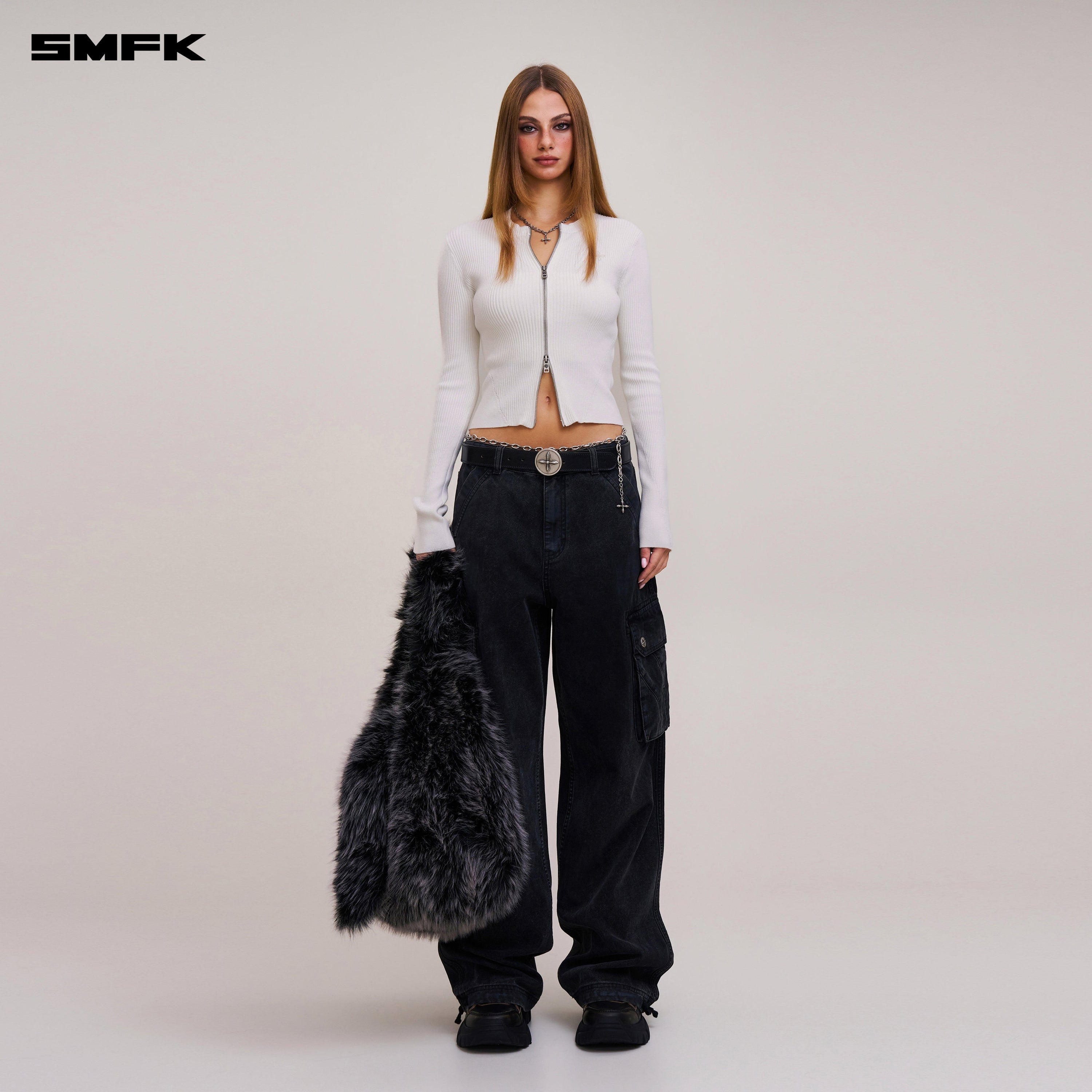 VINTAGE-SAVAGE ZIP KNIT CARDIGAN/STONE WASH VANISH WHITE