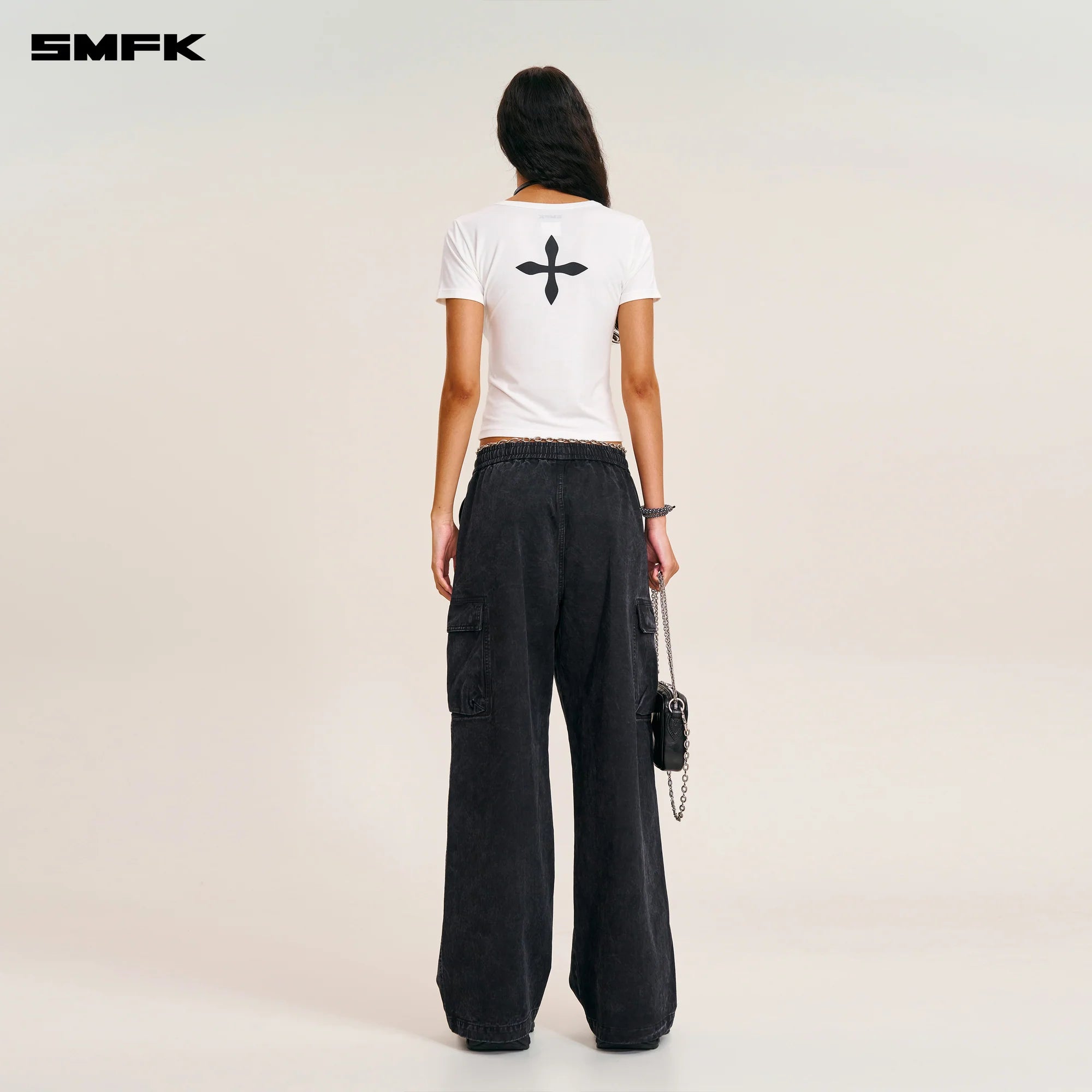 VINTAGE-STORM LOOSE SPORTS CARGO PANTS/FADE DYE WILD BLACK