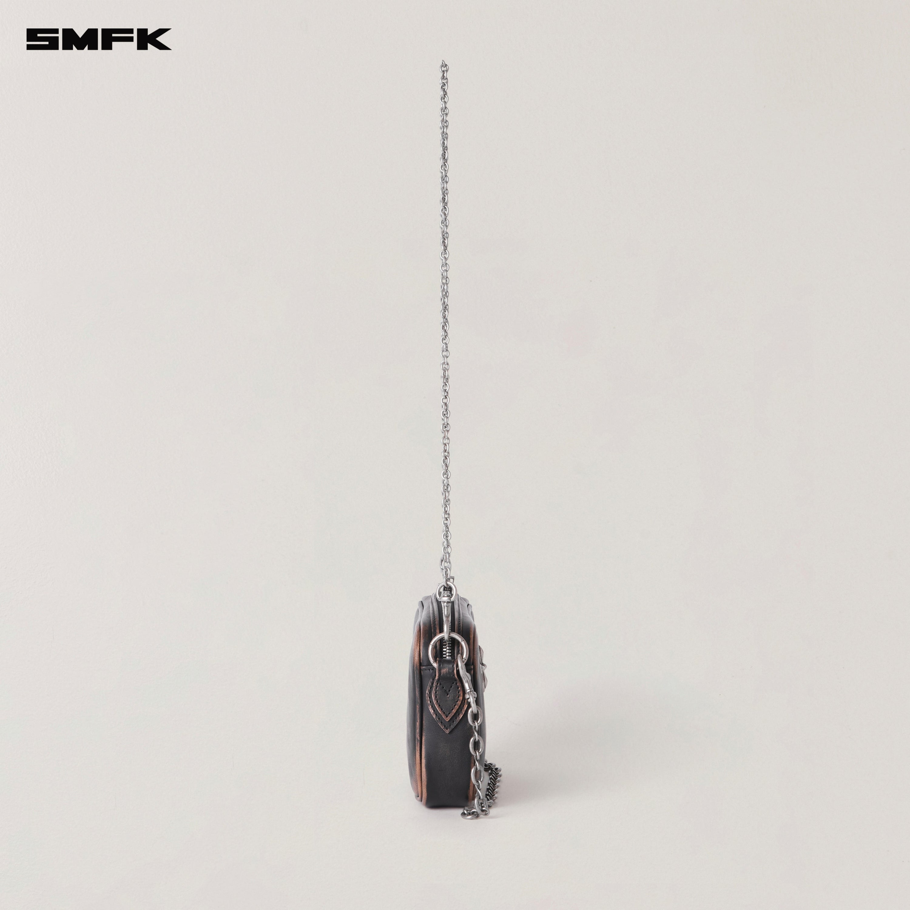 COMPASS BADGE PATINA LEATHER CHAIN BAG/SMALL WILD BLACK PATINA