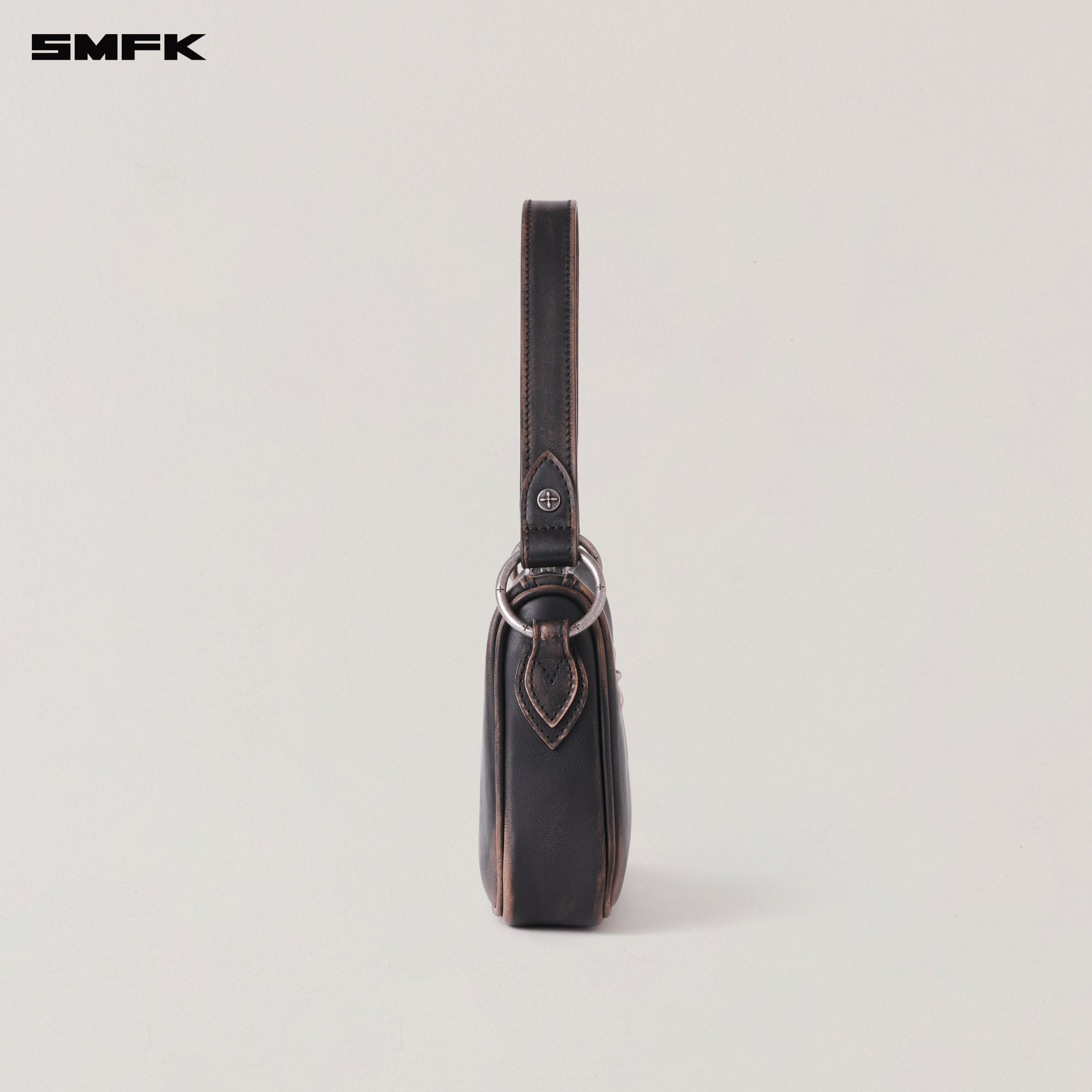 COMPASS BADGE HANDCRAFT PATINA LEATHER SHOULDER/MEDIUM WILD BLACK PATINA