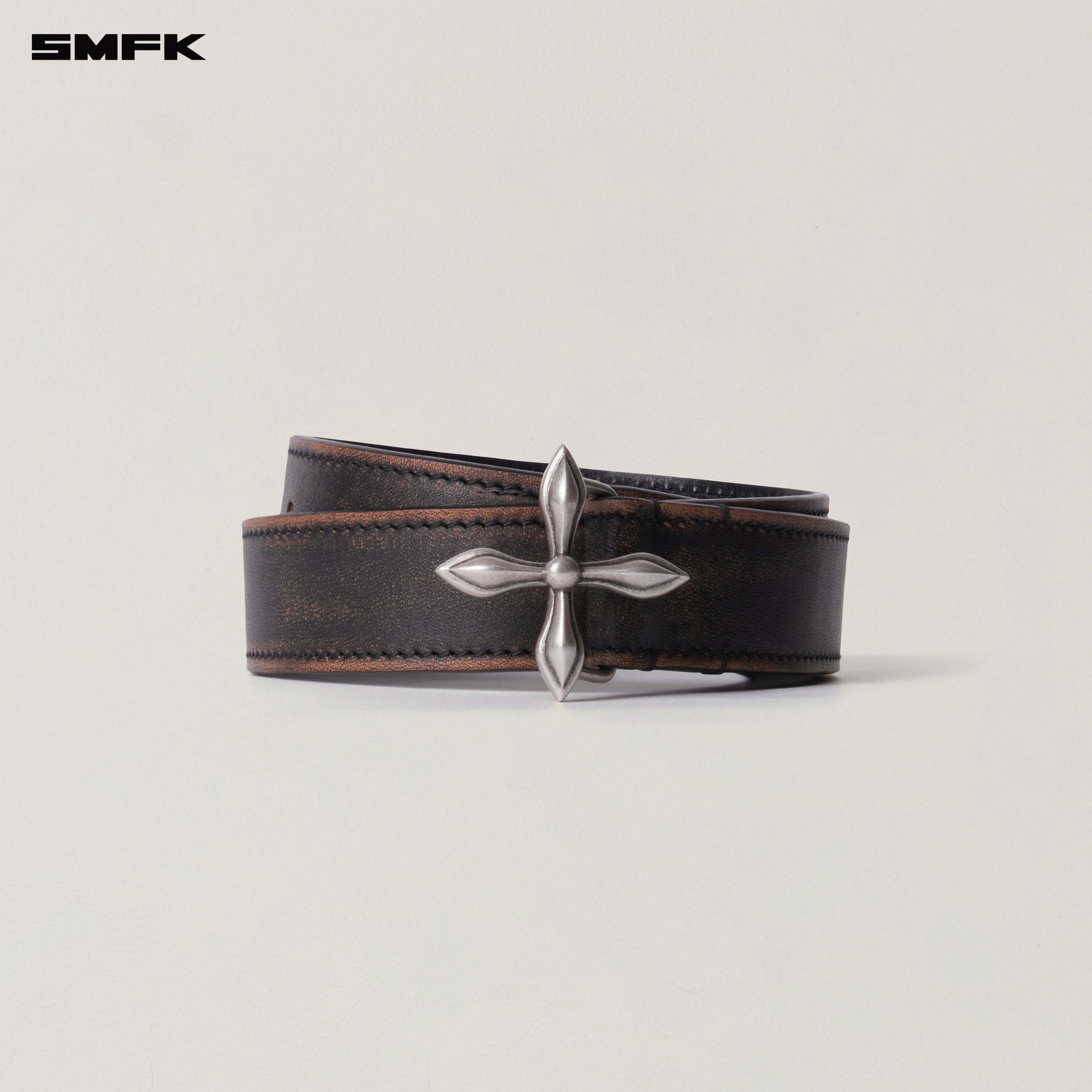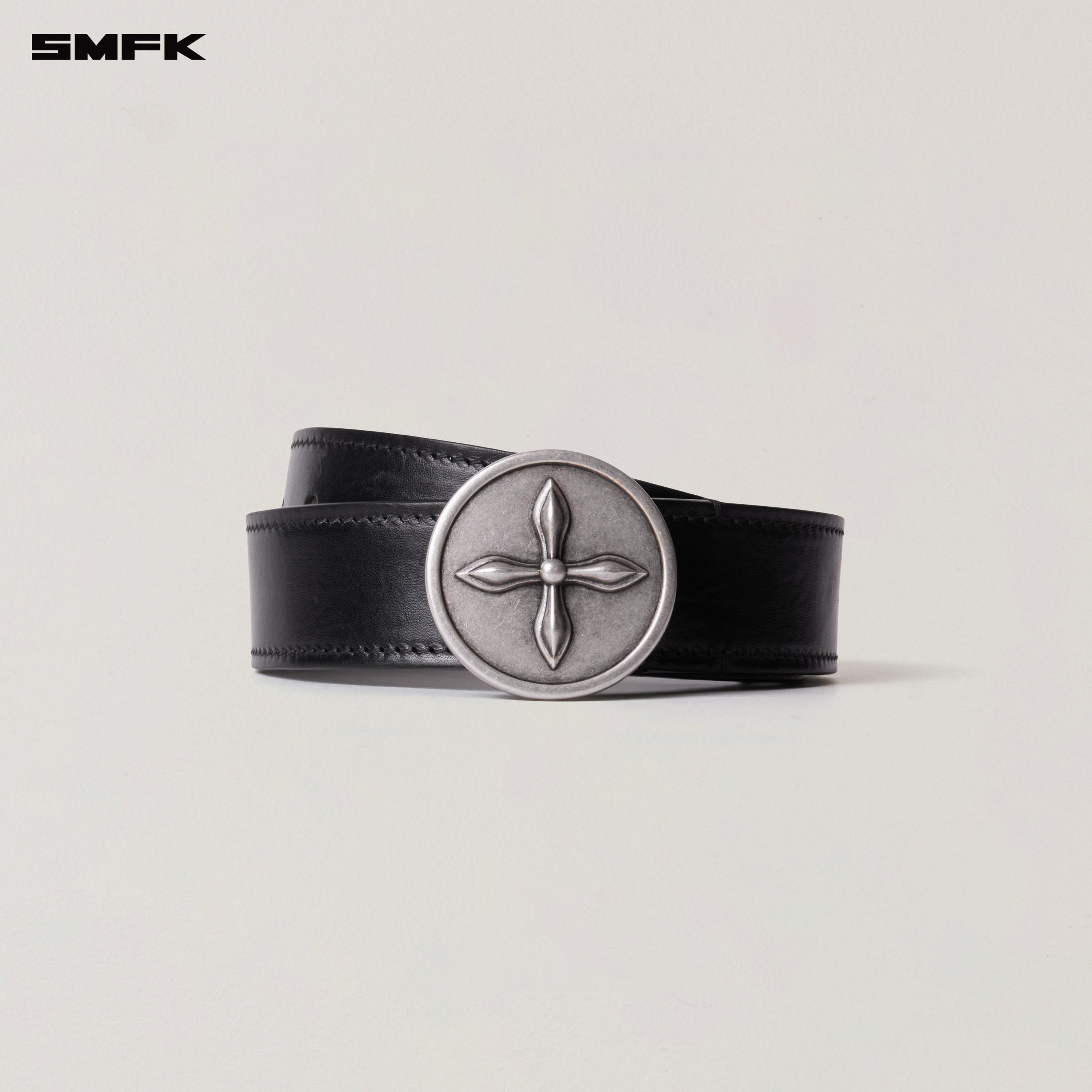 COMPASS TOTEM HANDCRAFT PATINA LEATHER BELT WILD BLACK PATINA