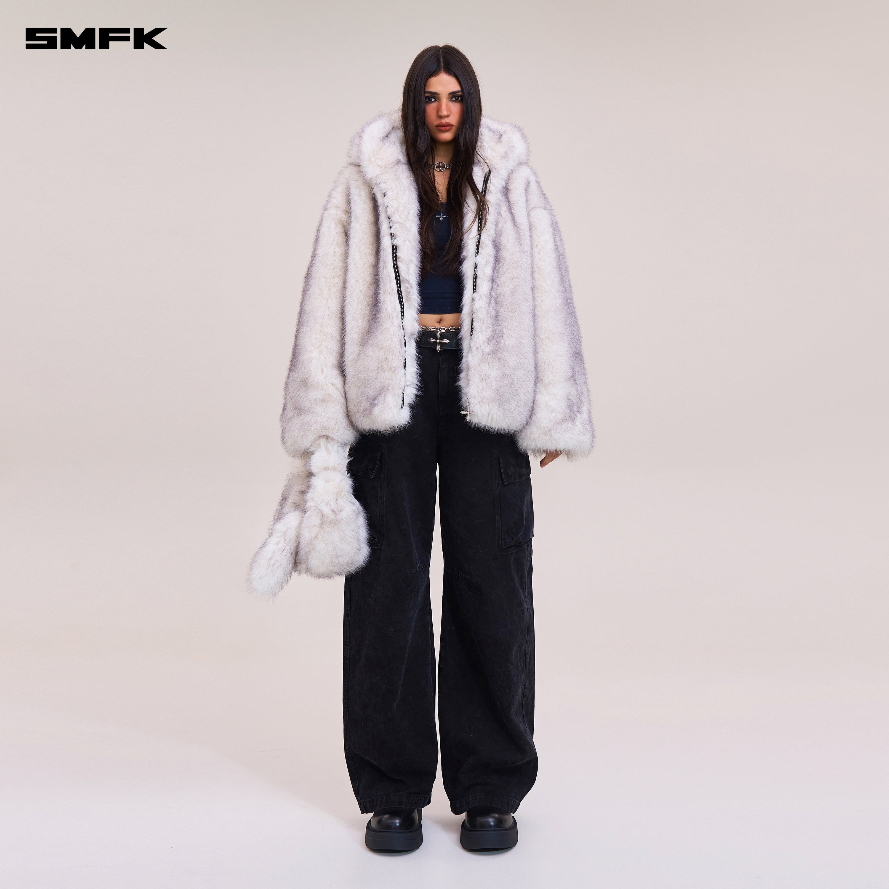 COMPASS MODE WASTELAND FURRY LOOSE HOODIE ARCTIC FOX WHITE