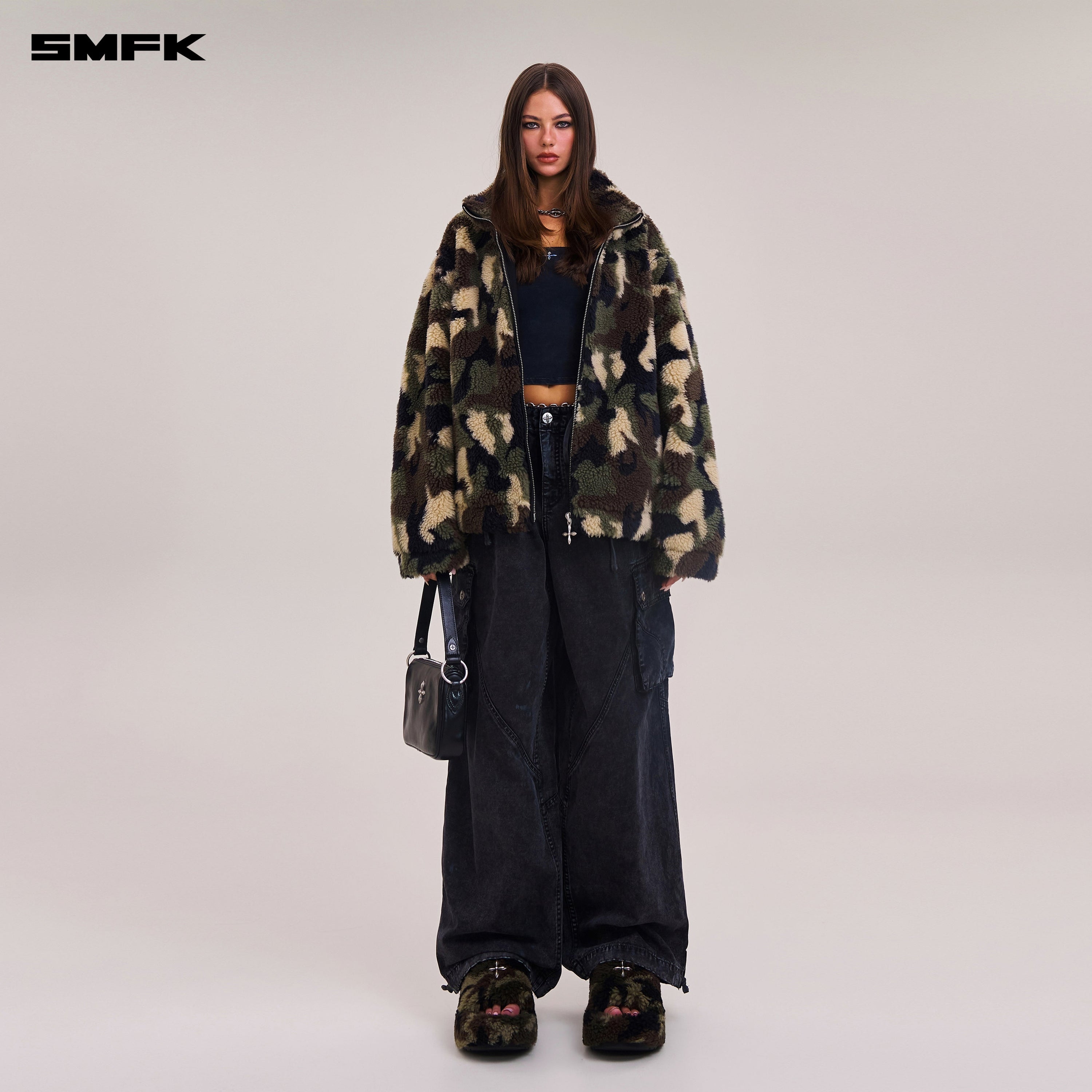 COMPASS MODE ROVE WOOL JACQUARD CAMO LOOSE JACKET GREEN GHOST CAMO