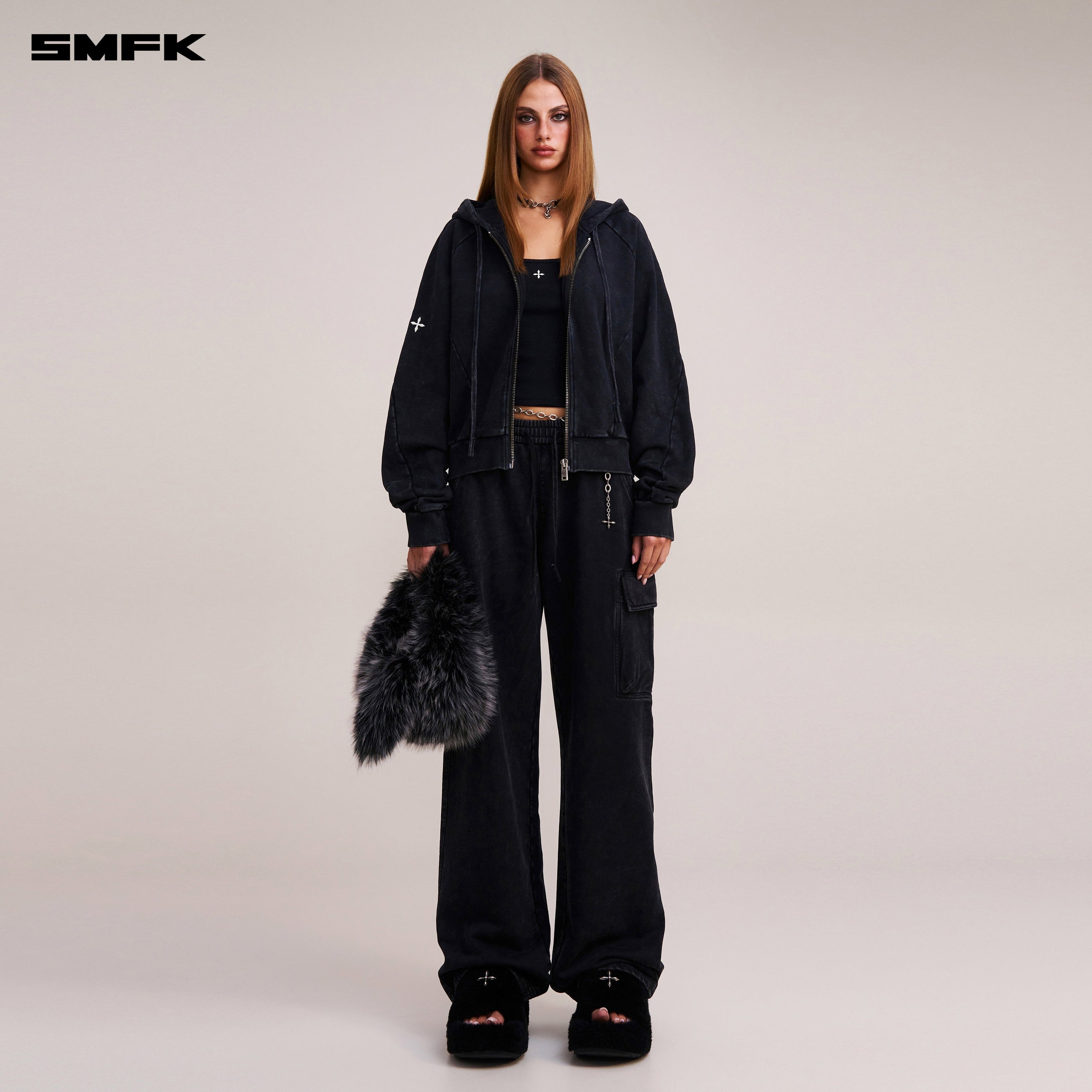VINTAGE-SAVAGE ZIP KNIT CARDIGAN/STONE WASH VANISH BLACK