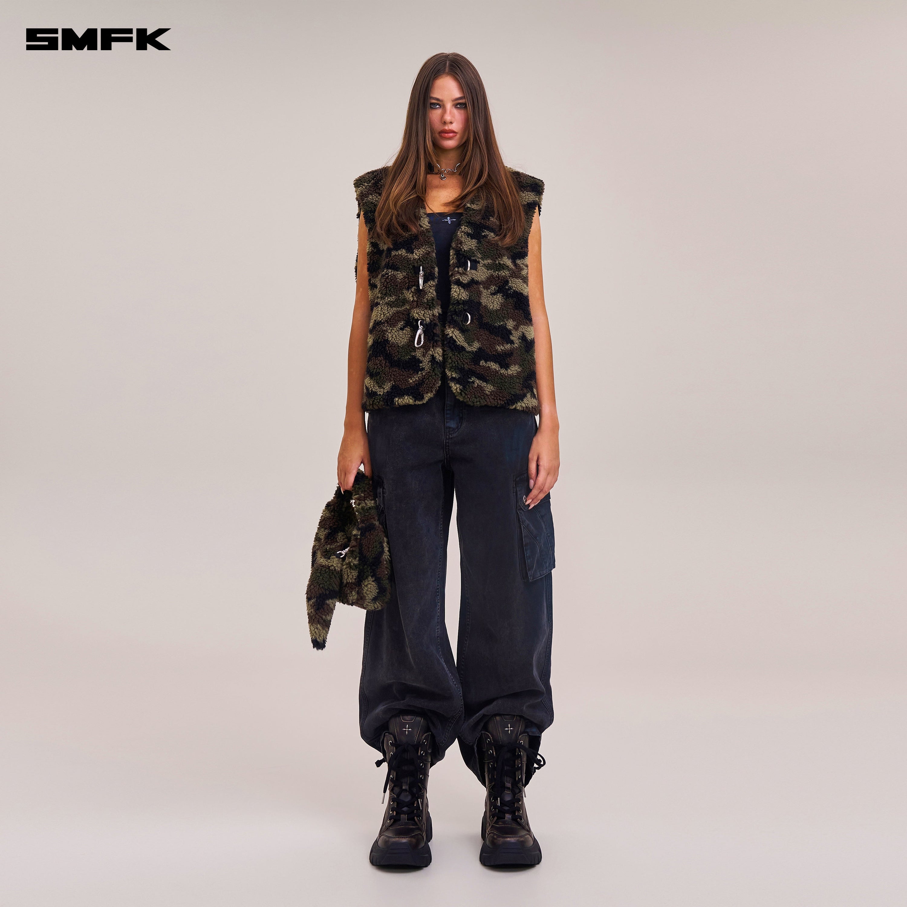 COMPASS MODE ROVE WOOL JACQUARD CAMO LOOSE TANK ARMY GREEN CAMOUFLAGE