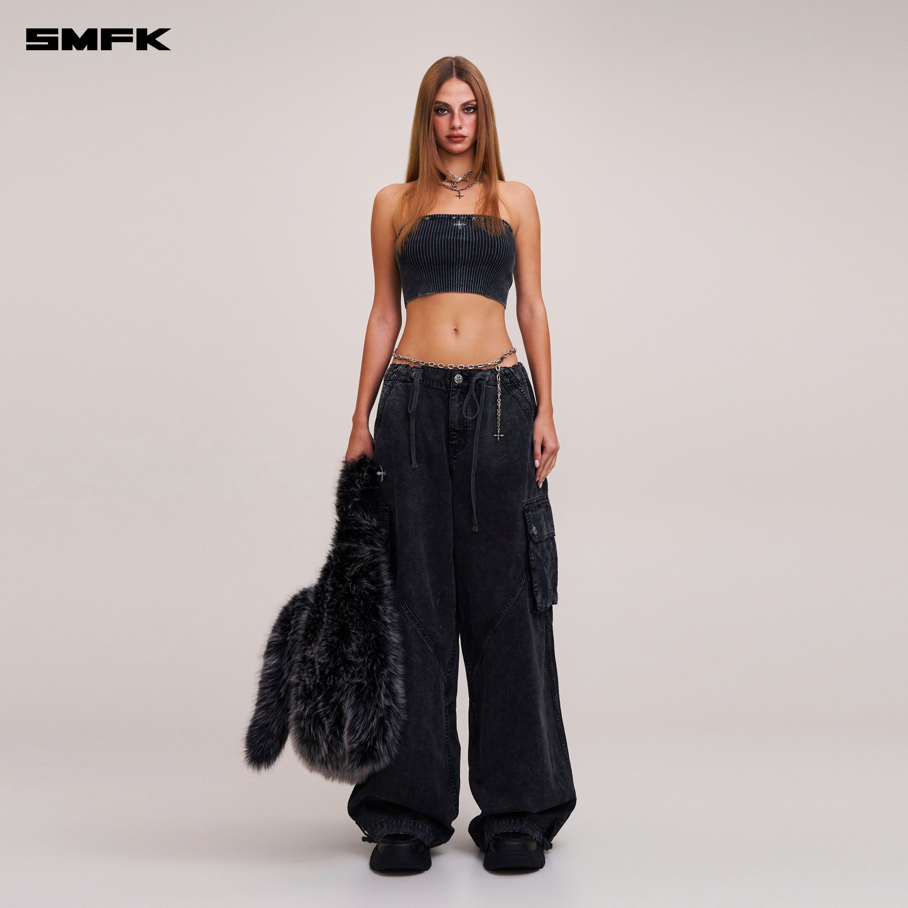VINTAGE-SAVAGE KNIT BUSTIER/STONE WASH VANISH BLACK